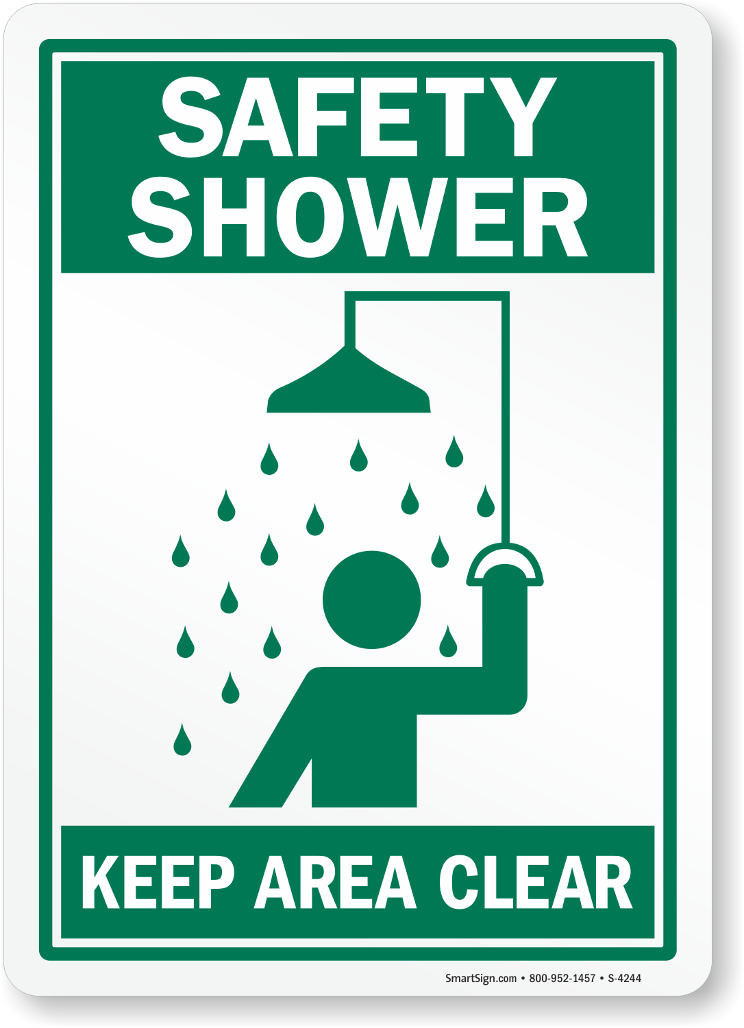 Don't let emergency equipment go unnoticed. Use a "safety shower keep area clear" sign. Prepare for an emergency.