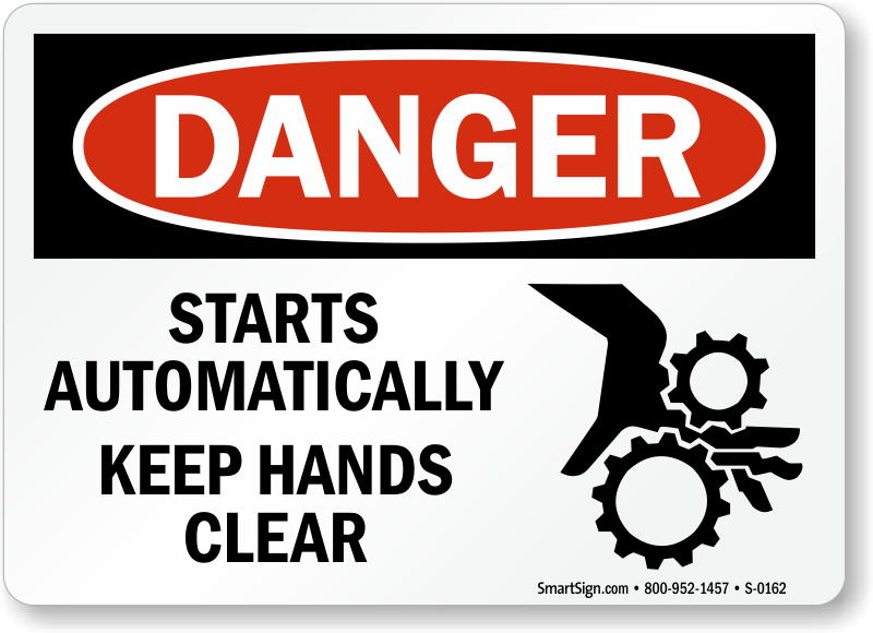 Remind employees that there is an automated machine. Use a "starts automatically keep hands clear" sign.