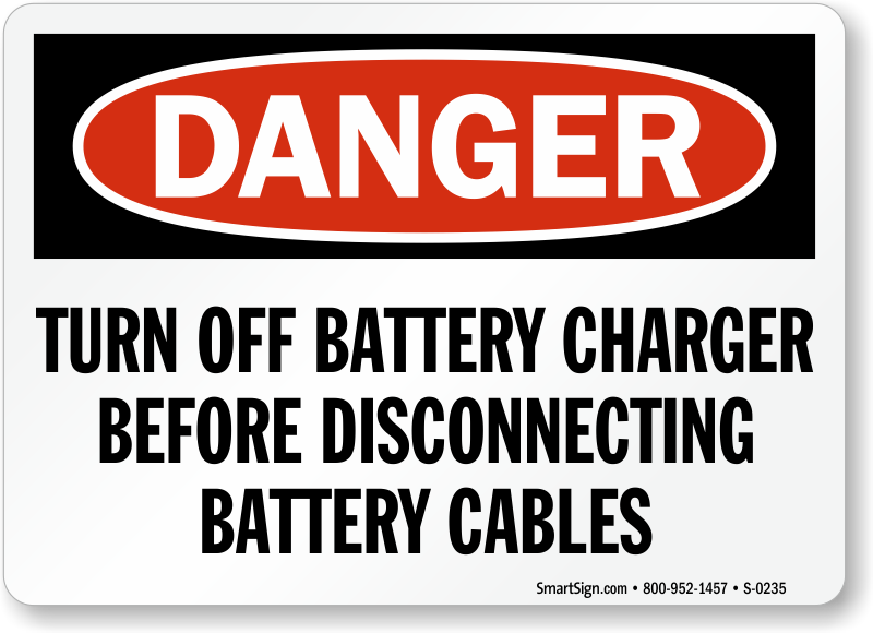 Remind workers of proper procedure. Turn off the battery charger power source before working with any cables.