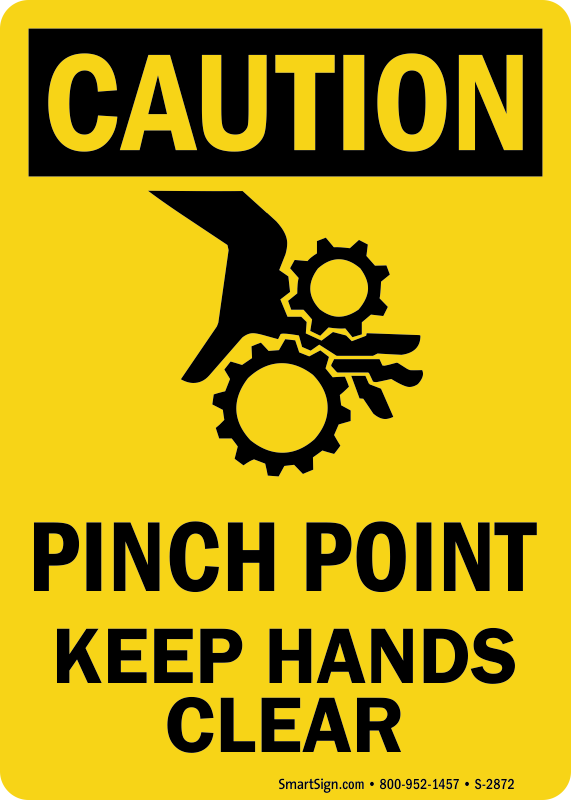 OSHA Caution Sign: Pinch Point Keep Hands Clear (with graphic)