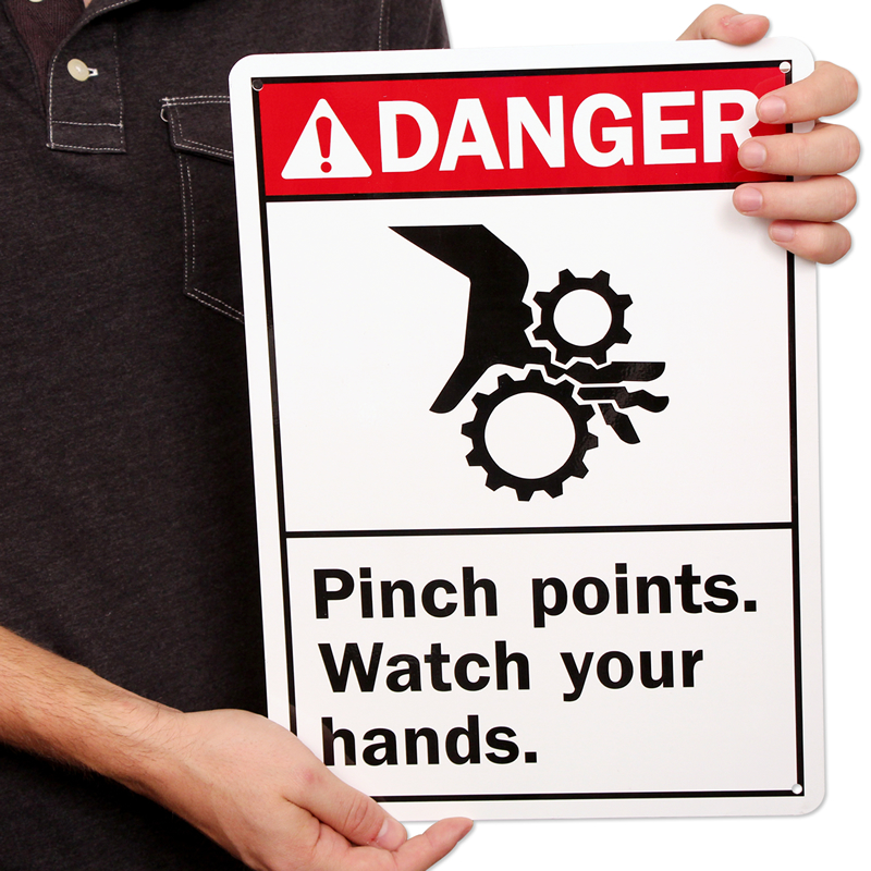 An ANSI danger sign warns against pinch point areas in your equipment and prevents hand hazards.