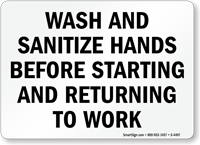 Don't let germs and dirt take over. Use a "wash and sanitize hands before starting and returning to work" sign. Comply with federal and state laws.