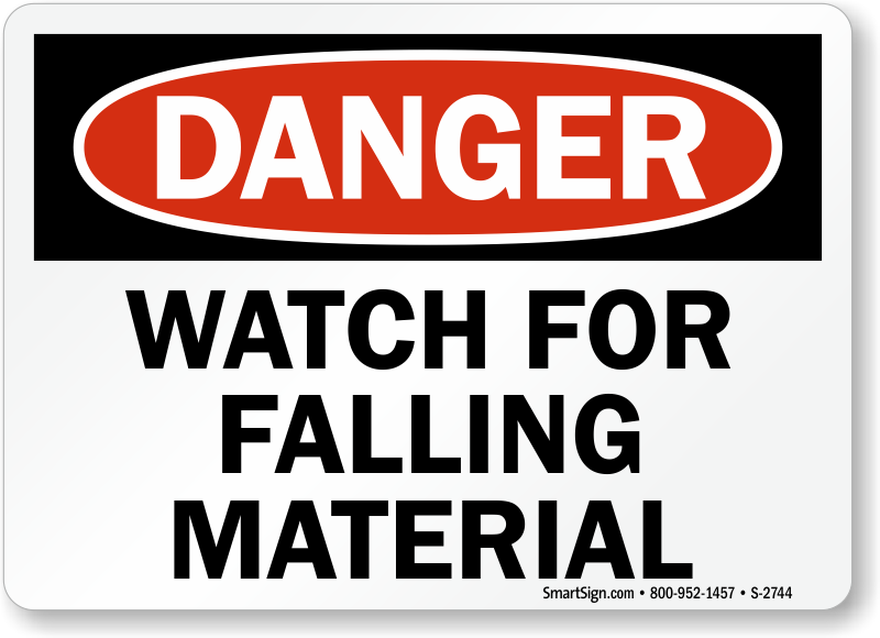 With this sign, alert everyone that they need to watch out for falling material and safeguard themselves against head injuries.