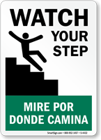 Bilingual Watch Your Step Sign: Watch Your Step / Mire Por Donde Camina