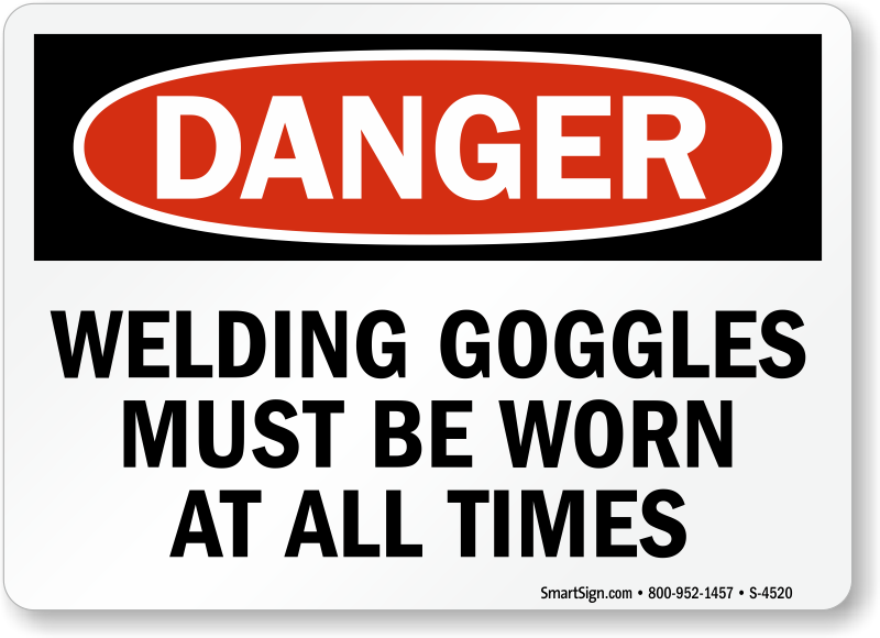 OSHA Danger Sign: Welding Goggles Must Be Worn At All Times S-4520