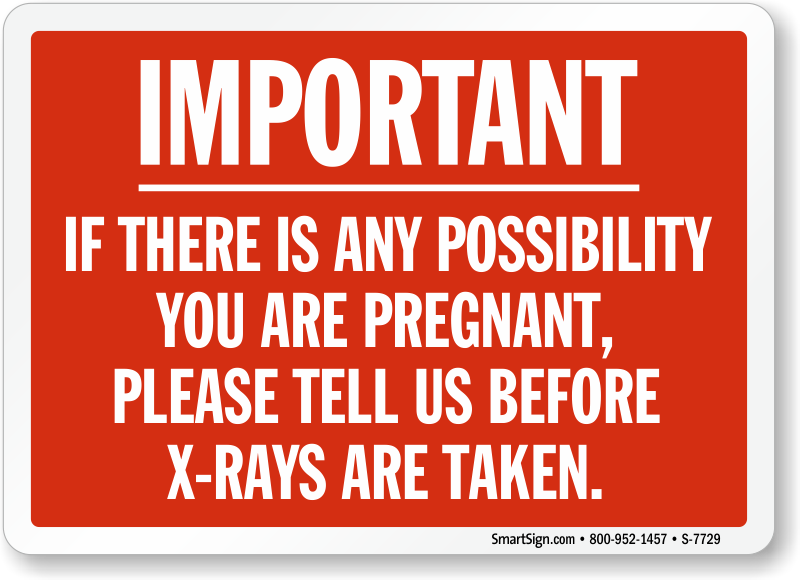 Take care of pregnant women and their babies around radiation with this prominent red and white sign.