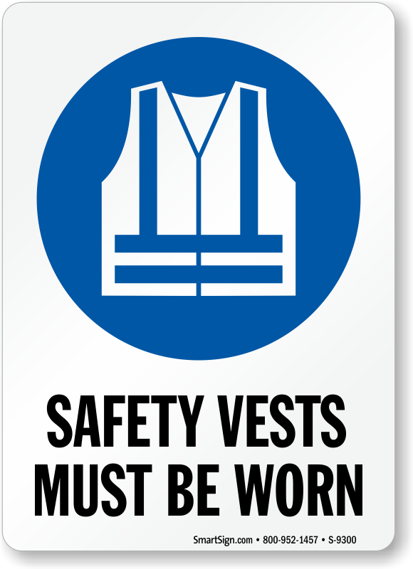 The safety vest sign is emblazoned with a graphic to remind workers to protect themselves and is understandable in all languages.