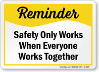 Safety Reminder Sign: Safety Only Works When Everyone Works Together S2-1629