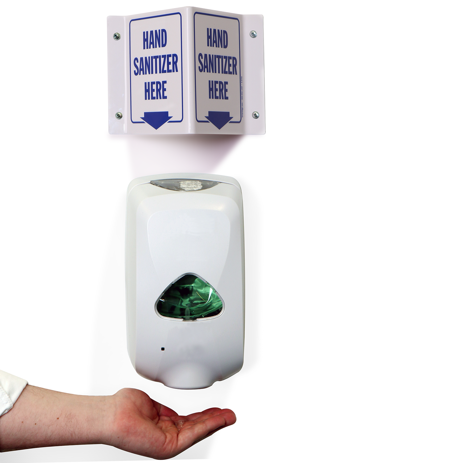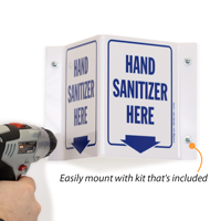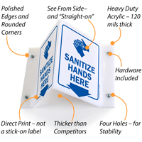 2-Sided Projecting Sign: Sanitize Hands Here S2-4339 Learn More...