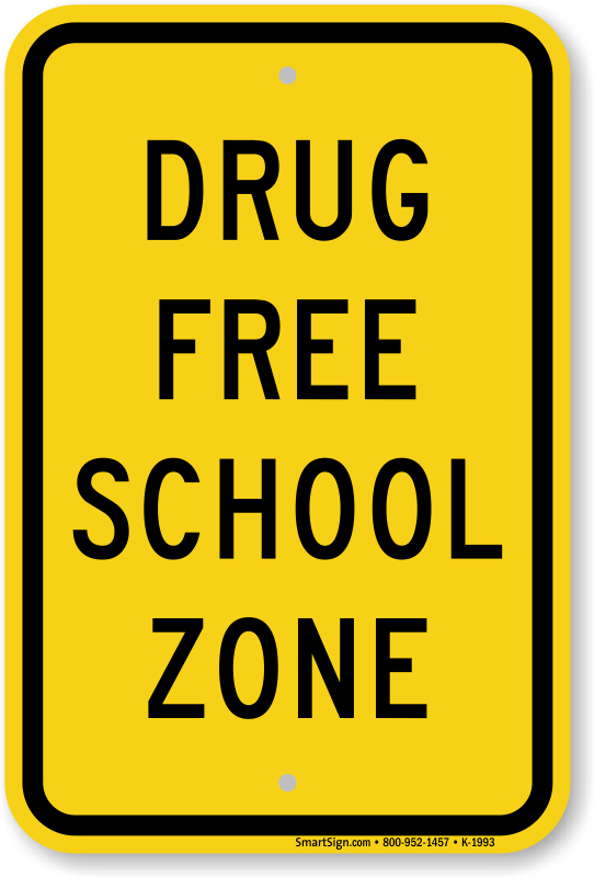 Drug Free School Sign: Drug Free School Zone K-1993 Learn More...