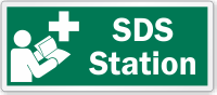 Keep your laboratory organized by marking the safety data sheet station. Apply this label and facilitate workers in finding the SDS of a chemical.