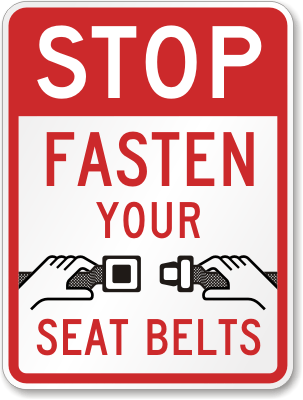 Wear Seat Belt Sign: Fasten Your Seat Belt! (seat belt symbol) Learn More...