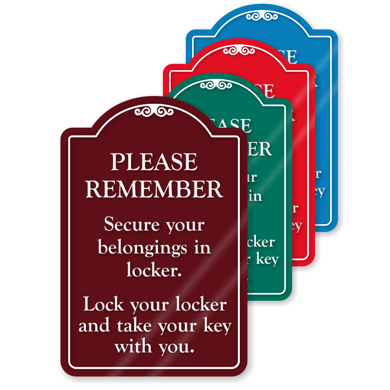 Politely request everyone to secure their belongings in locker with this eye-catching designer sign.