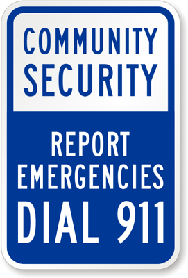 Security Watch Sign: Community Security - Report Emergencies Dial 911 Sign K-4403 Learn More...