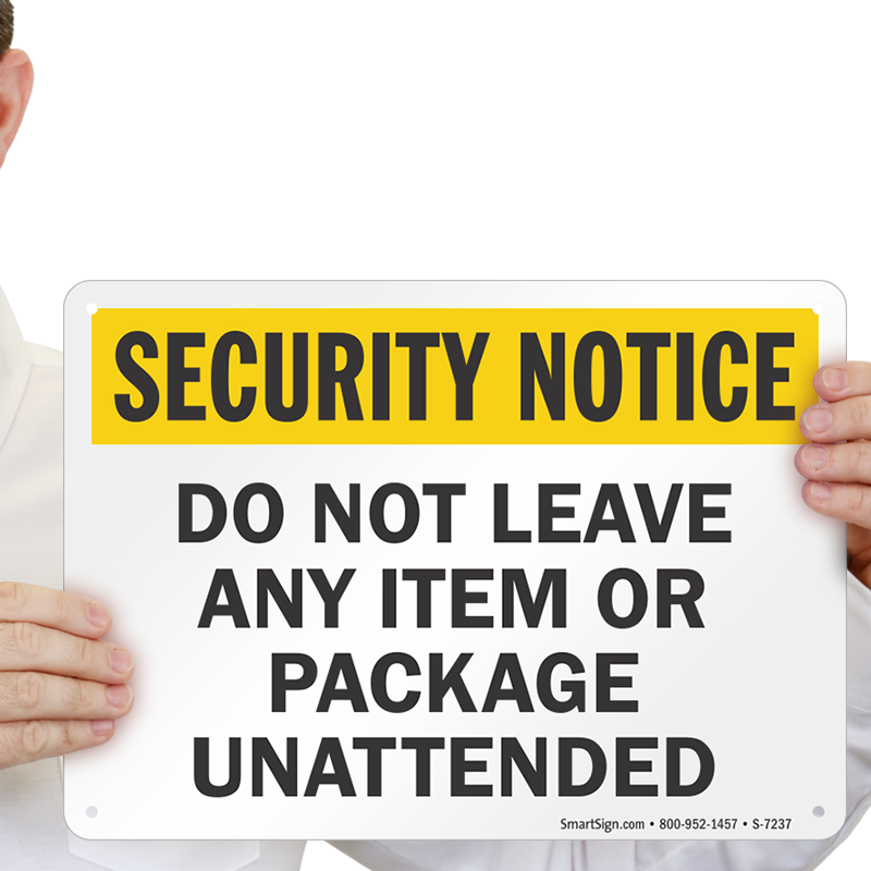 Security Notice Sign: Do Not Leave Any Item Or Package Unattended S-7237