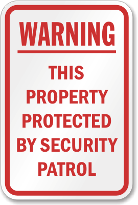 Security Patrol Sign: Warning - This Property Protected By Security Patrol K-1103 Learn More...