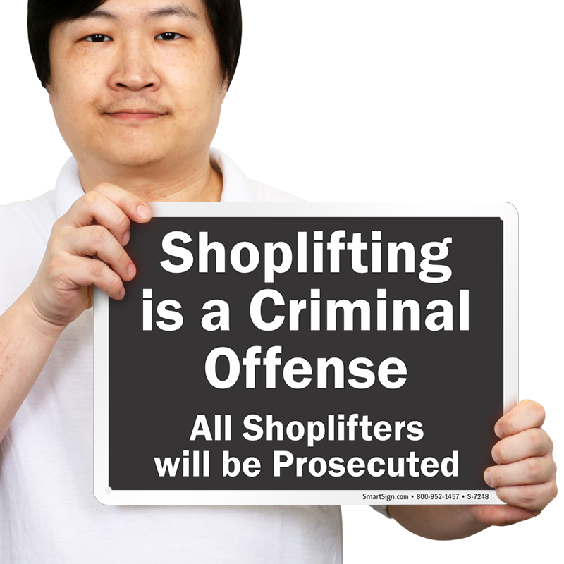 Shoplifting Sign: Shoplifting Is A Criminal Offense, All Shoplifters Will Be Prosecuted S-7248