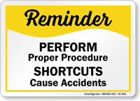 Safety Reminder Sign: Perform Proper Procedure. Shortcuts Cause Accidents S2-1631