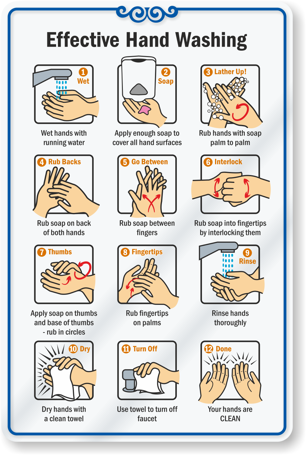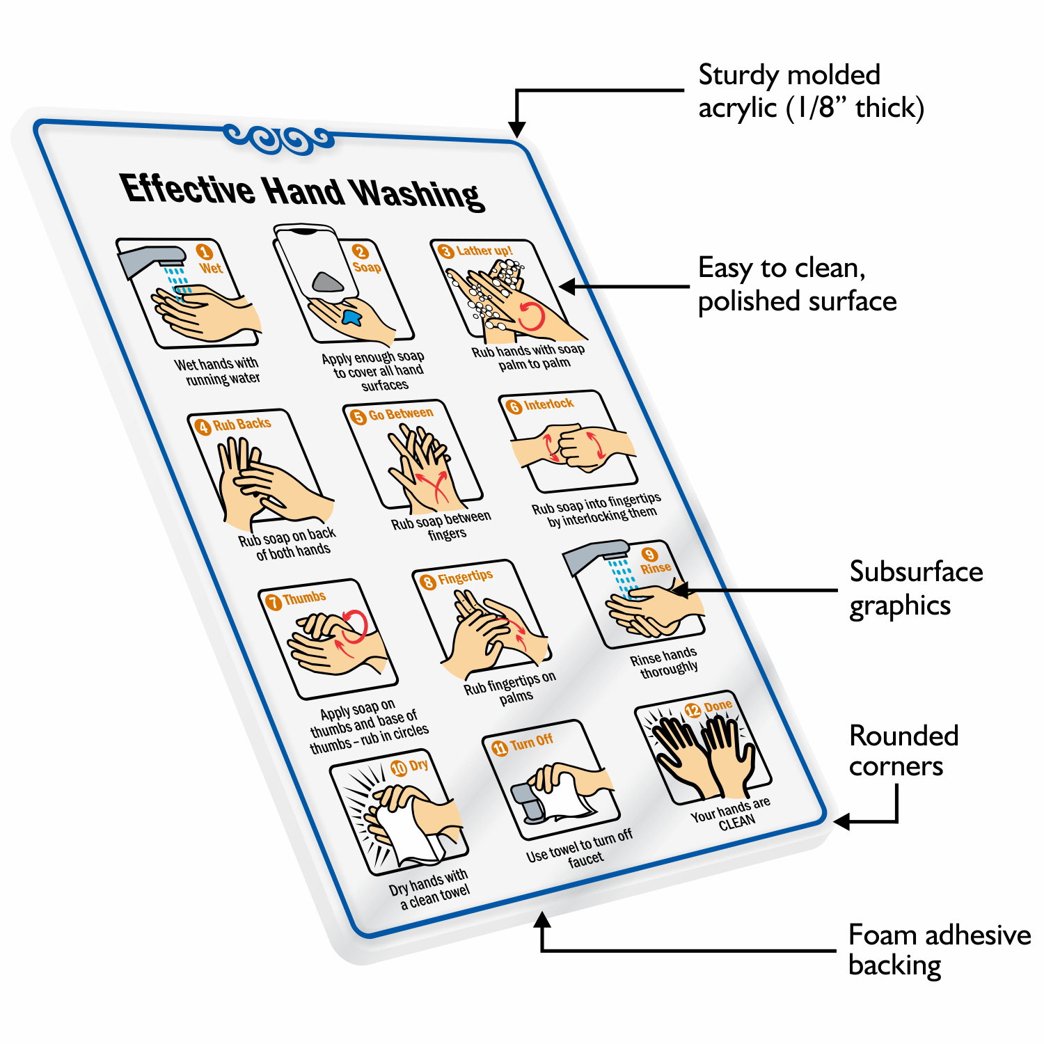 Only 10% of people wash their hands properly. And, even worse, most men do not even wash their hands after using the bathroom. That’s scary. And, not safe. This important Hand Washing Instructions Sign not only gives an important reminder to wash your hands, but gives critical step-b-step instructions.