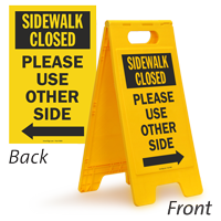 Notify visitors that the sidewalk is closed and indicate which direction to use, with the help of a 2-Sided Standing Floor Sign. Just fold and store the sign flat when sidewalk opens.