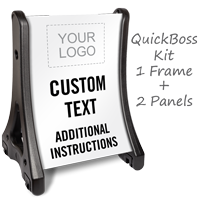 • QuickBoss sign kit includes two custom 24” x 36” printed panels and a quick load frame.