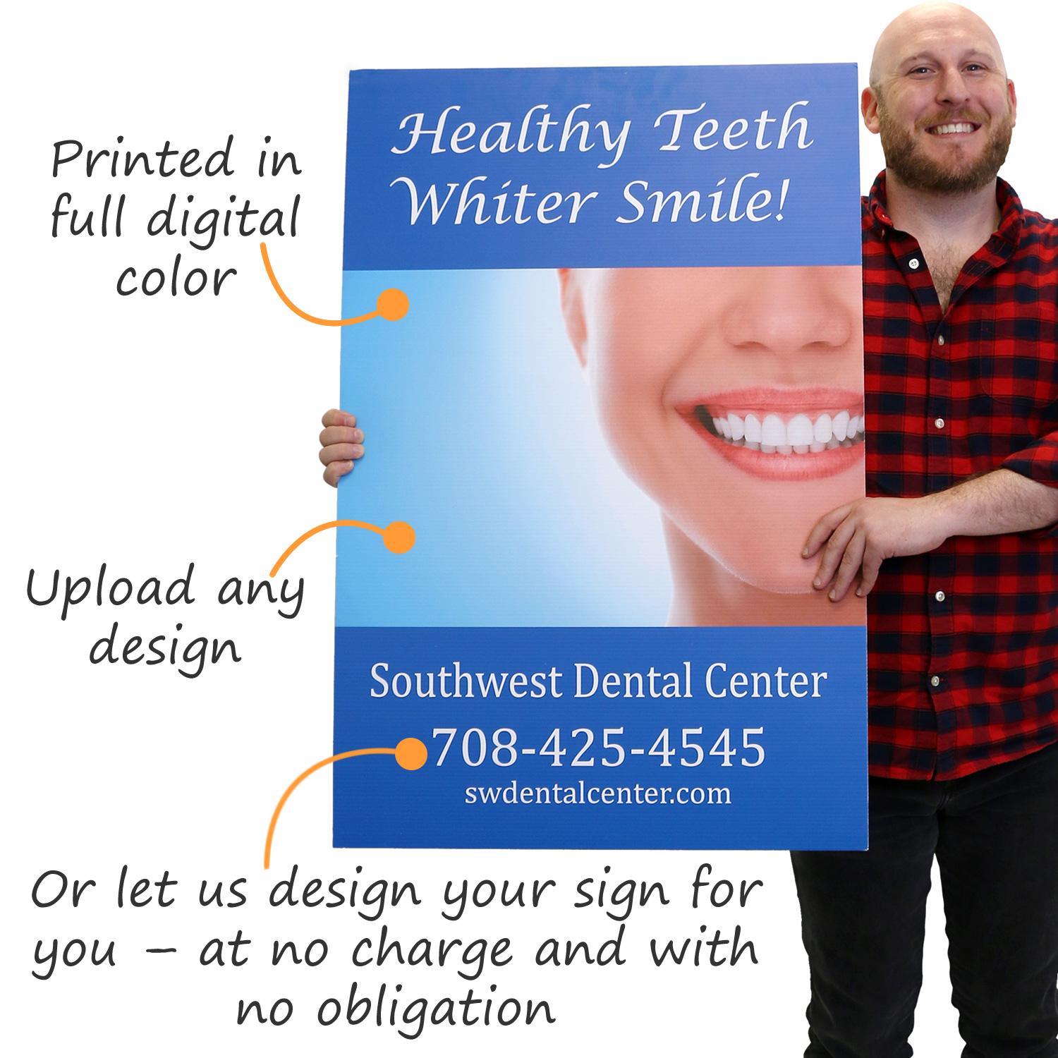 • Choose either standard Coroplast or our innovative reflective option. Reflective Coroplast is great for outdoors. Make sure your message can be seen at night.