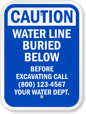 Personalize this water line sign with contact information so excavators know who to call before working.