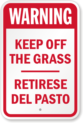 Bilingual Keep Off Grass Sign: Warning - Retirese Del Pasto (English/Spanish) K-8492 Learn More...