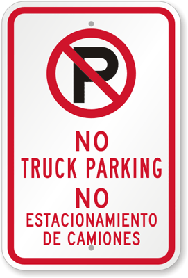 Bilingual No Parking Sign: No Truck Parking, No Estacionamiento De Camiones (with No Parking Symbol) K-8872 Learn More...