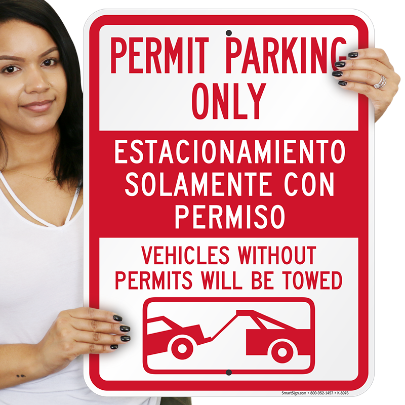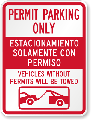 What do you get when you cross a Permit Parking Only sign with two languages, a scary warning and a pretty graphic? A durable, straightforward sign baby, that's what! Get this bilingual red and white aluminum sign today and keep your parking lot regulated properly.