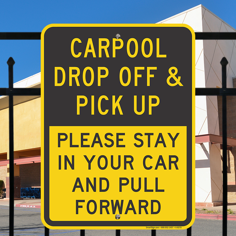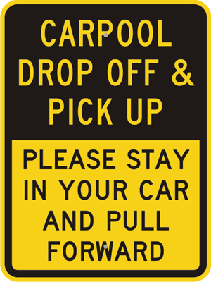 Carpool Sign: Carpool Drop Off & Pick Up - Please Stay in Your Car And Pull Forward K-8270