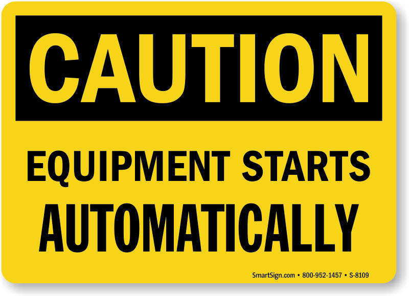 Don't leave anyone surprised; post a Equipment Starts Automatically Sign.