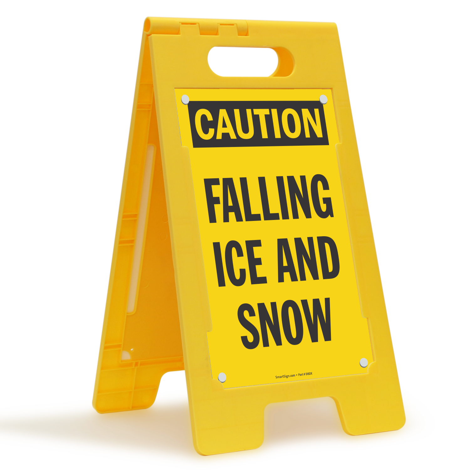 After a brutal snowstorm there may be leftover ice and snow, even so much as days later. Warn people with a Caution Floor Sign that says 'Falling Ice And Snow'. Durable yet lightweight, sign is easy to lift with an easy grip handle.