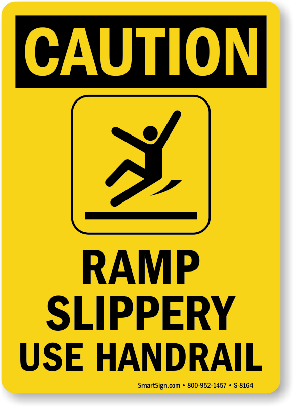 It may be obvious to some, but only a Ramp Slippery Use Handrail Sign will make sure that all ramp users take that extra safety step to avoid accidents.