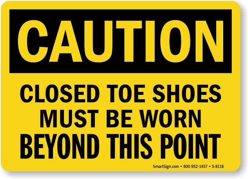 OSHA Caution Sign: Closed Toe Shoes Must Be Worn Beyond This Point S-8118