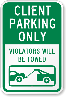 Reserved Parking Sign: Client Parking Only, Violators Will Be Towed (with Car Towing Graphic) K-8712 Learn More...