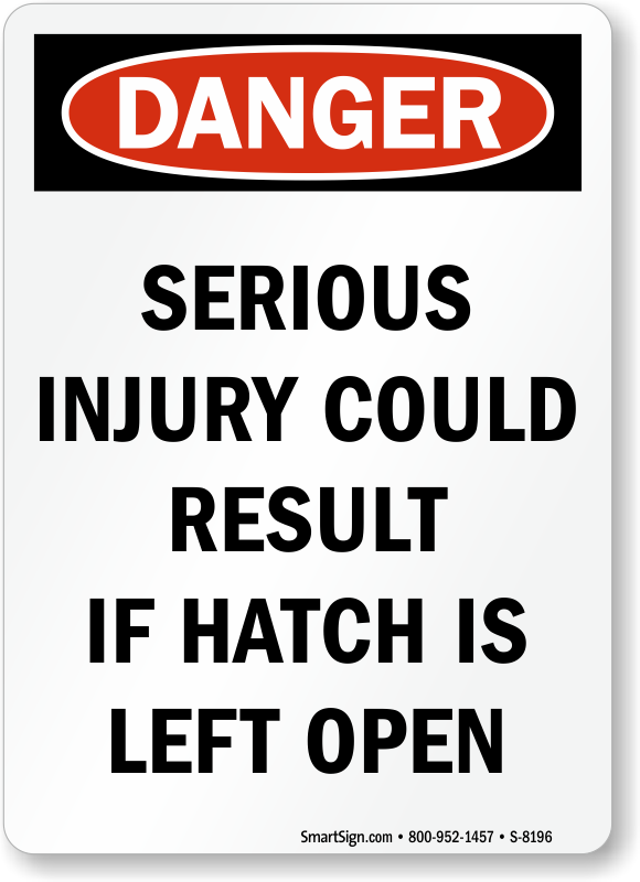 This Danger Serious Injury Could Result if Hatch is Left Open sign could save lives. An OSHA compliant Danger Sign decreases your liability and minimizes accidents.