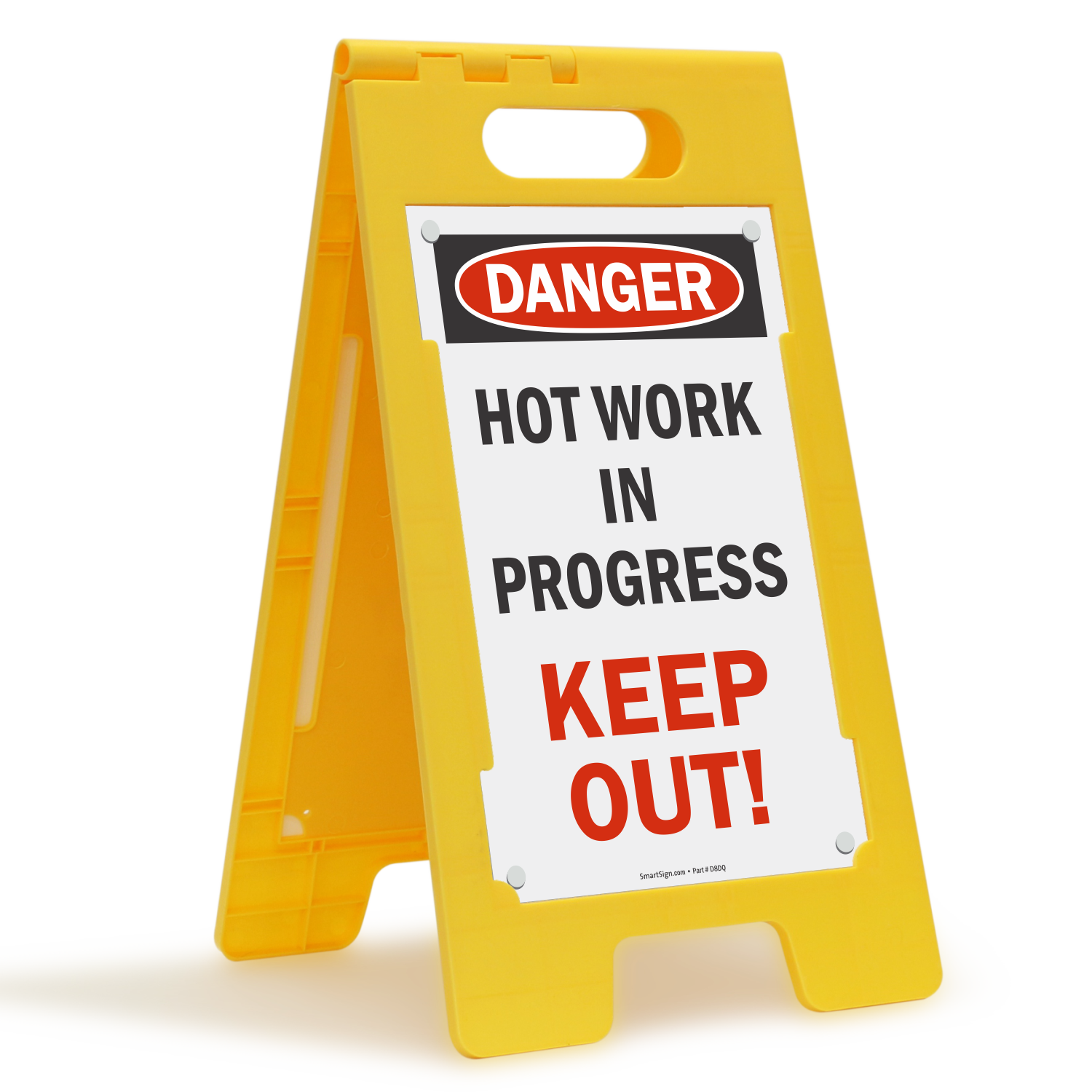 Want a sure fire way to keep unwanted visitors out? A Hot Work In Progress Keep out Sign will deter visitors. This plastic Floor Sign fold for easy maneuvering.