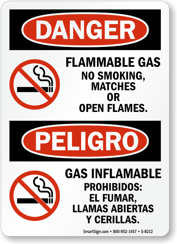 For flammable materials, use a sign to display the rules and minimize danger. A Bilingual OSHA Danger Safety sign is universally recognized as a warning to all Spanish and English speaking visitors and workers that safety precautions must be taken to avoid accidents.