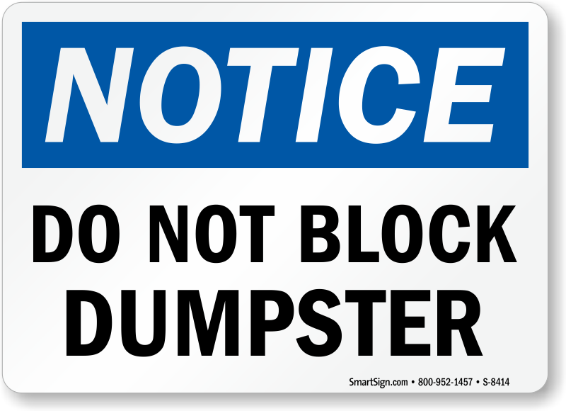 Dumpsters are an important feature so ensure they are accessible. Post a Do Not Block Dumpster Sign.