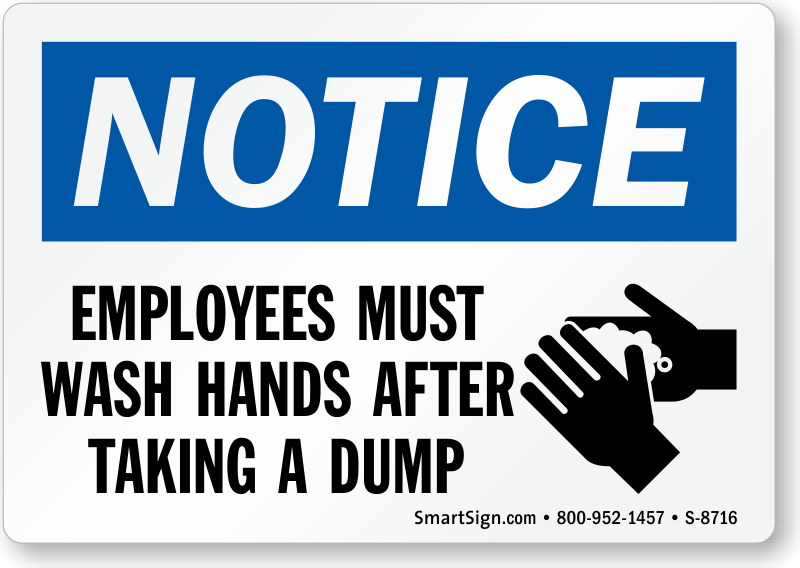 Remind employees to wash hands after using the restroom to maintain hygiene and avoid contamination.