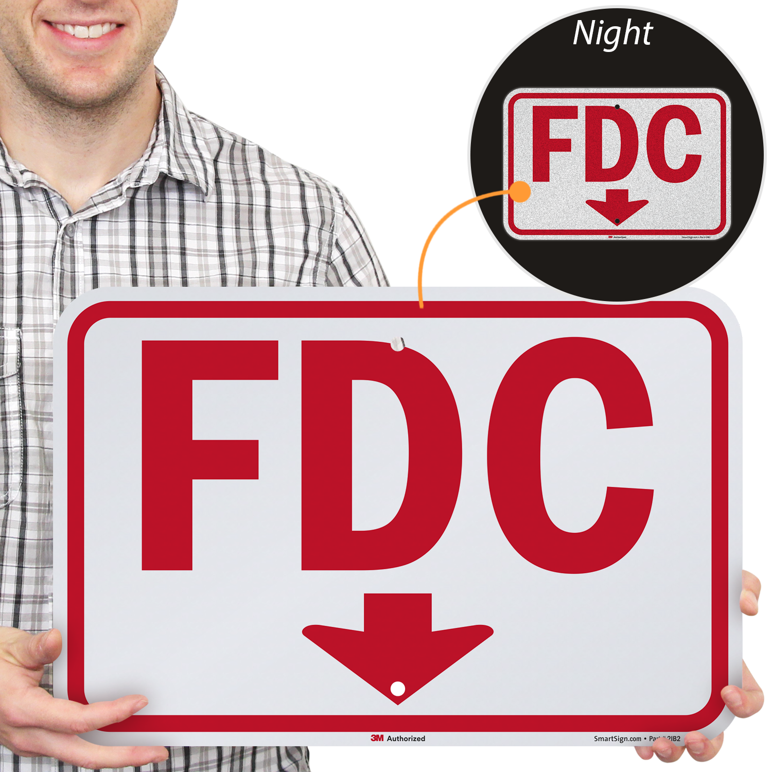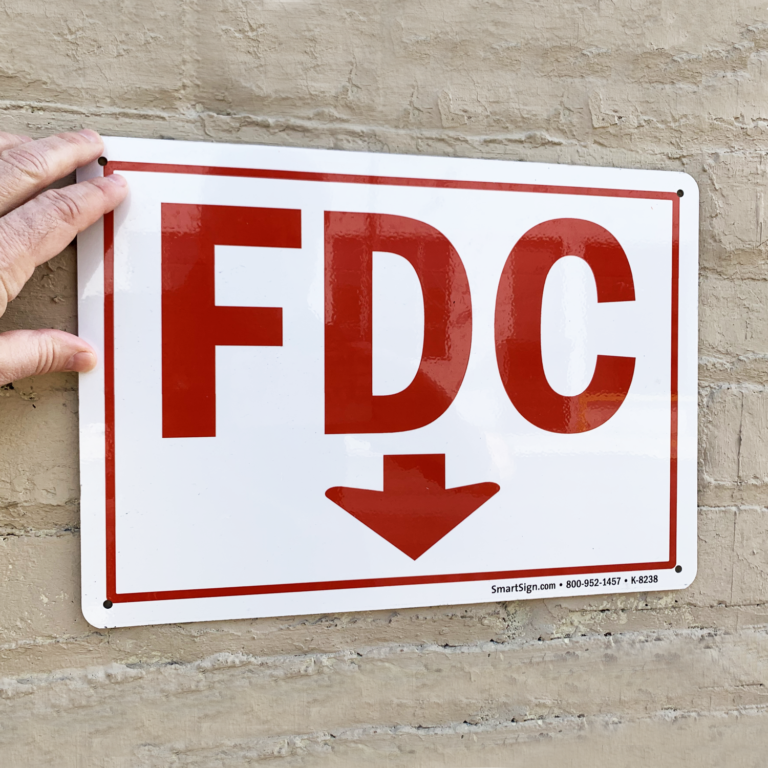 Fire Department Connection Sign: FDC (With Downward Pointing Arrow) Learn More...