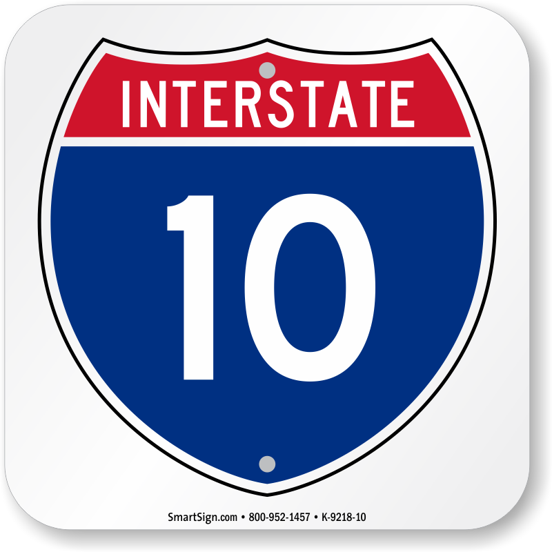 Interstate Sign: Interstate 10 (I-10) K-9218-10 Learn More...