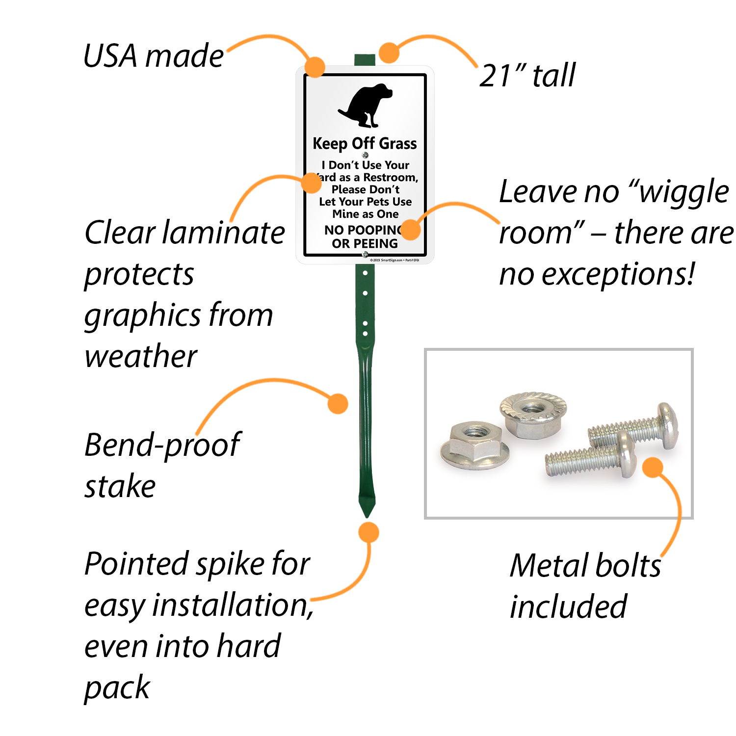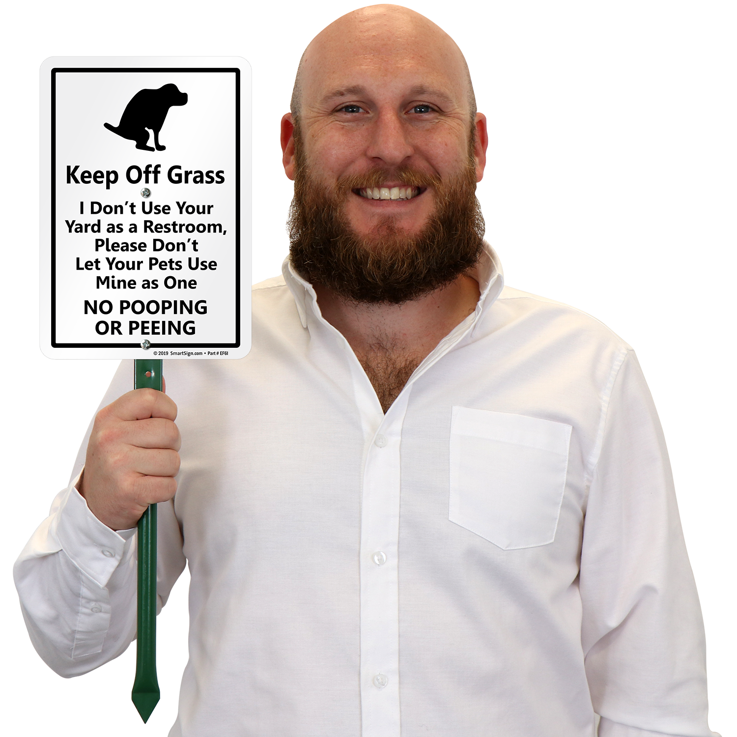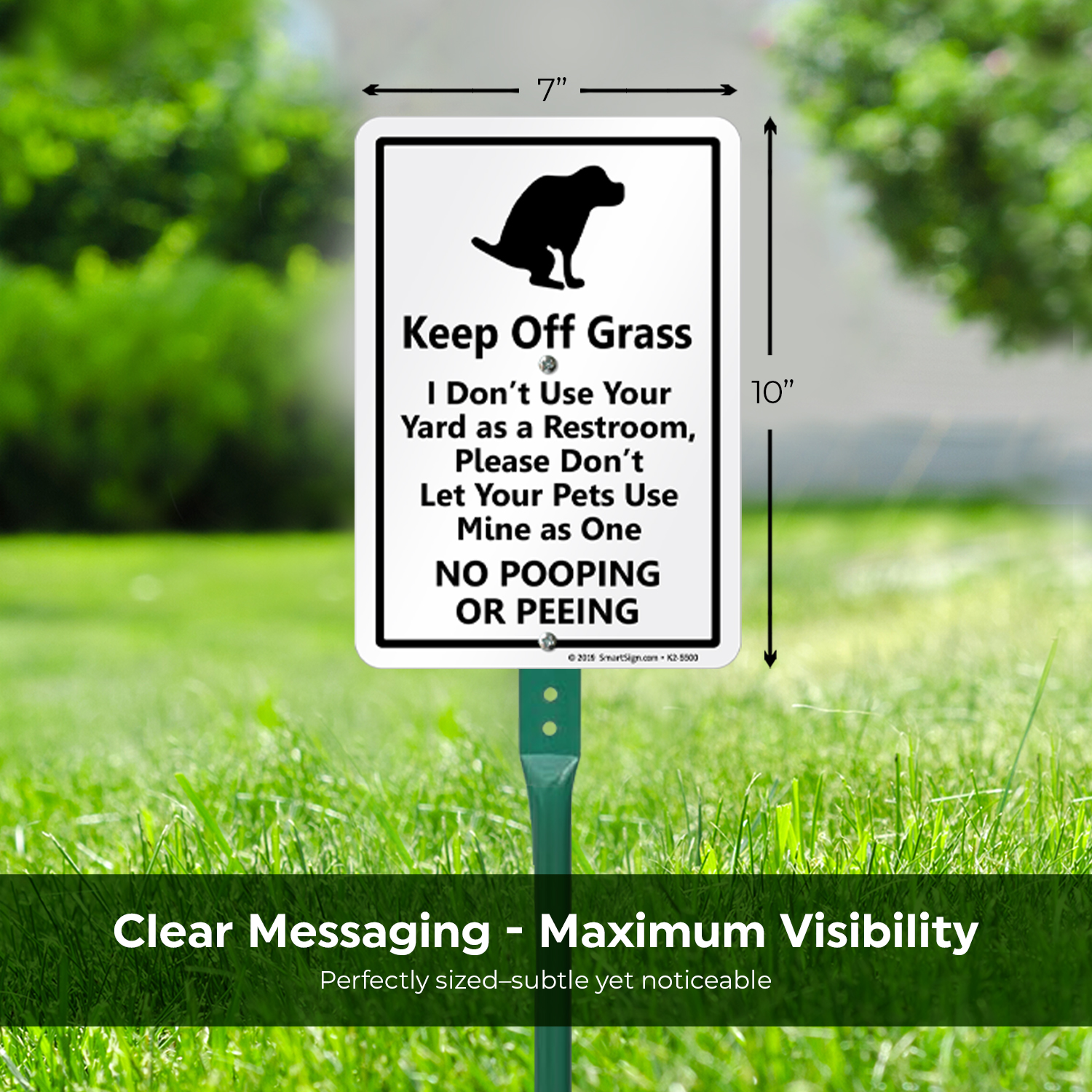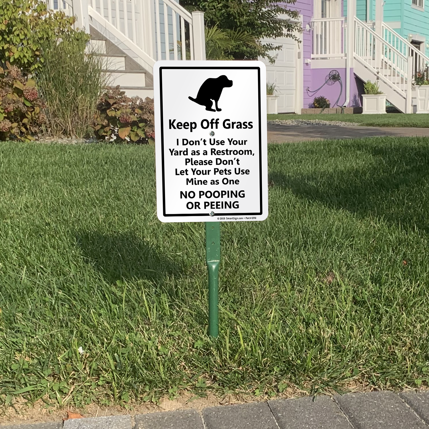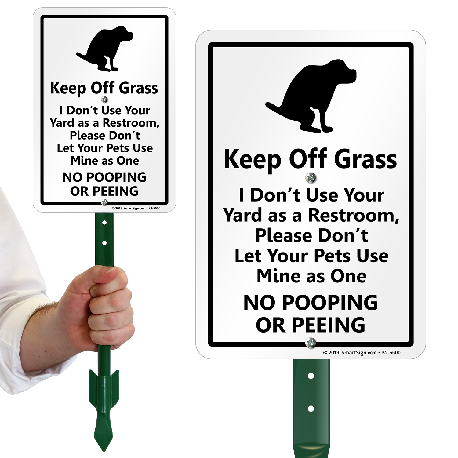 Post a polite reminder to keep pets away from your lawn. Sign prohibits owners from letting their pets do their business on your property.