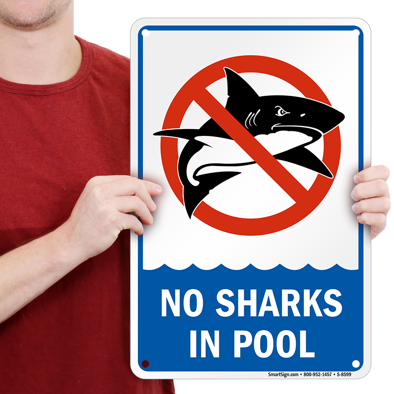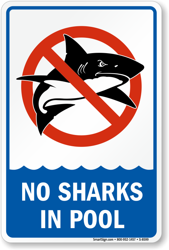 Humorous Pool Sign: No Sharks In Pool With No Shark Symbol S-8599