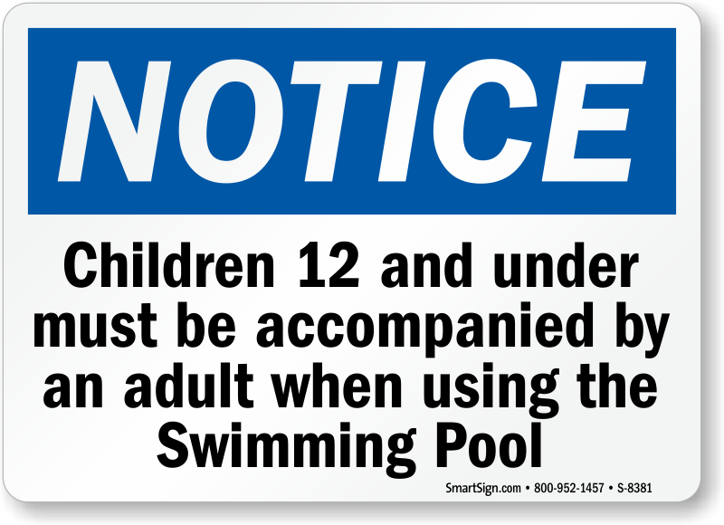 Keep your pool fun and accident-free with a Children Must Be Accompanied by Adult Sign.