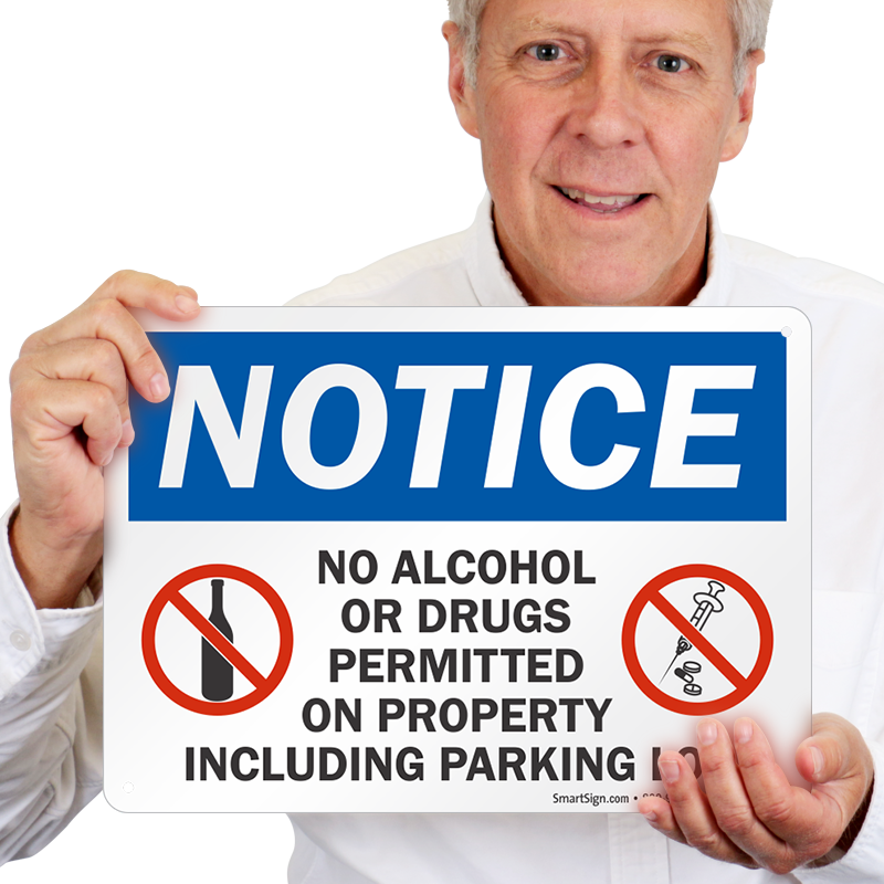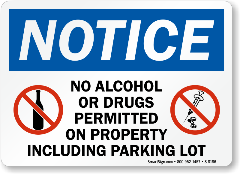 Without a sign, nobody would know that alcohol and drugs are forbidden on your property or parking lot. A No Alcohol or Drugs sign clearly states the rules.