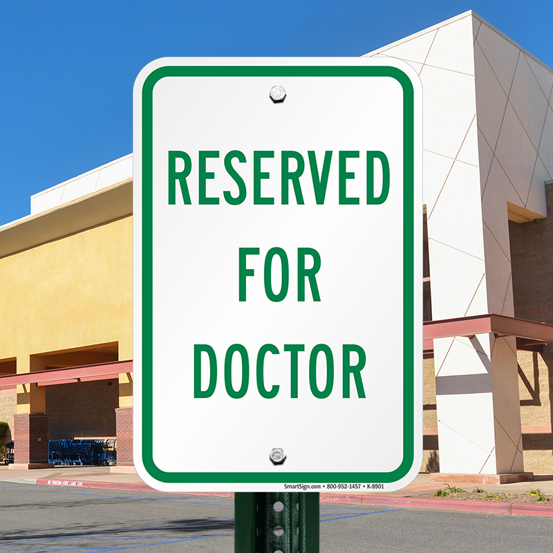 Reserved Parking Sign: RESERVED FOR DOCTOR K-8901 Learn More...
