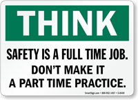 Think Quality Sign: Safety Is A Full Time Job. Don't Make It A Part Time Practice. S-8449
