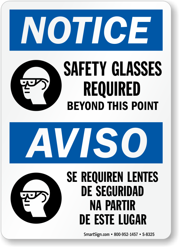 Mark unsafe areas with a helpful Safety Glasses Required Beyond This Point sign. Nothing works better to get your point across than a bilingual sign.